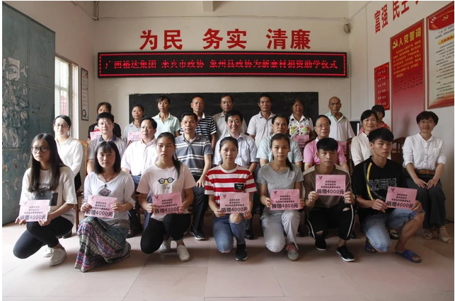 8月22日上午,象州新寨村16名貧困大學(xué)生每人都收到了來自裕達(dá)慈善基金會(huì)、來賓政協(xié)捐助的4000元助學(xué)資金。來賓市政協(xié)主席韋善國(guó)、象州縣委書記鄧應(yīng)文、象州縣政協(xié)主席翁秋德、我集團(tuán)副總裁梁鋒等領(lǐng)導(dǎo)出席了助學(xué)儀式。