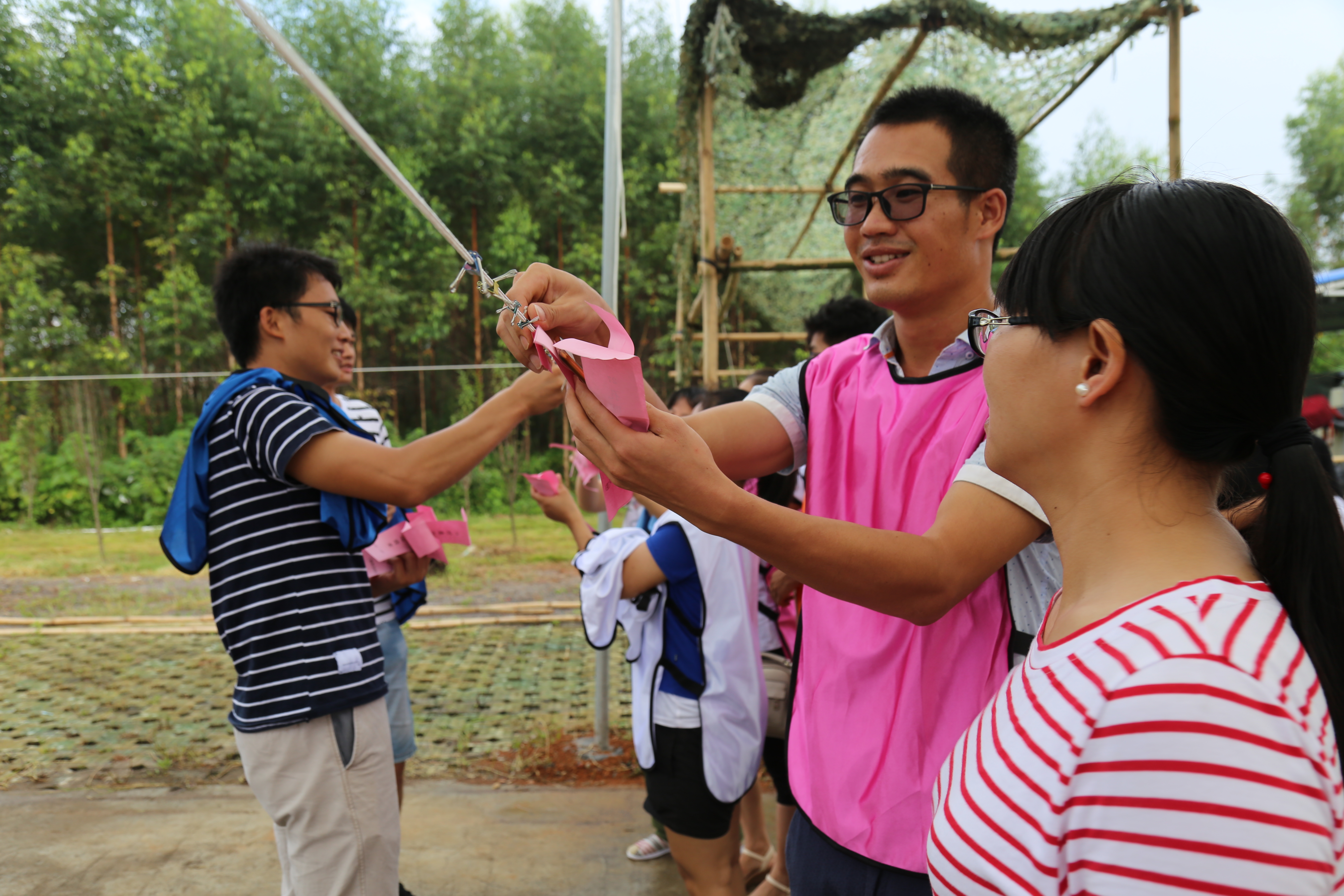 此次趣味游園活動分有集體項目和自由項目,設有拔河、袋鼠蹦跳、猜燈謎、空中套物等活動。游園活動還沒開始,大家已經熱情高漲、躍躍欲試了。“猜燈謎”緊張趣味,最激烈的當屬拔河比賽,天藍隊與淺藍隊旗鼓相當,啦啦隊熱情助威……活動開始后現(xiàn)場氣氛活躍,歡呼聲笑聲不斷,場面異常熱鬧,通過團隊活動,充分的展現(xiàn)了員工之間的凝聚力和團隊合作能力。之后,大家進行美味的燒烤活動。