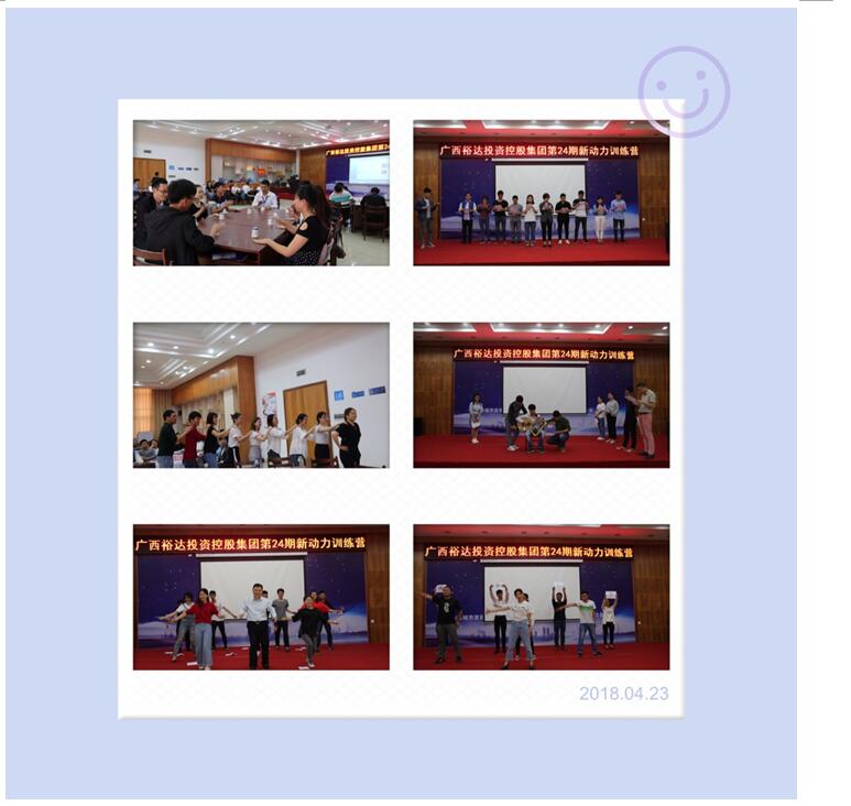 為了讓新員工更好地了解公司企業(yè)文化及各項(xiàng)通用管理制度,盡快的融入到裕達(dá)集團(tuán)這個(gè)大平臺。集團(tuán)培訓(xùn)中心于2018年4月21日至22日,在七樓大會議室,成功舉辦了為期兩天的第二十四期新動(dòng)力訓(xùn)練營培訓(xùn)。本期新動(dòng)力訓(xùn)練營為2018年第二期(總24期),參訓(xùn)學(xué)員來自集團(tuán)六中心及部分子(分)公司,包含2018年1月26日—2018年4月17日前入職的新員工以及未參加第二十三期新動(dòng)力訓(xùn)練營培訓(xùn)的員工,共61人。本次培訓(xùn)由培訓(xùn)中心經(jīng)理敖顯文和培訓(xùn)專員肖梅以及實(shí)習(xí)培訓(xùn)專員許馨文擔(dān)任講師。