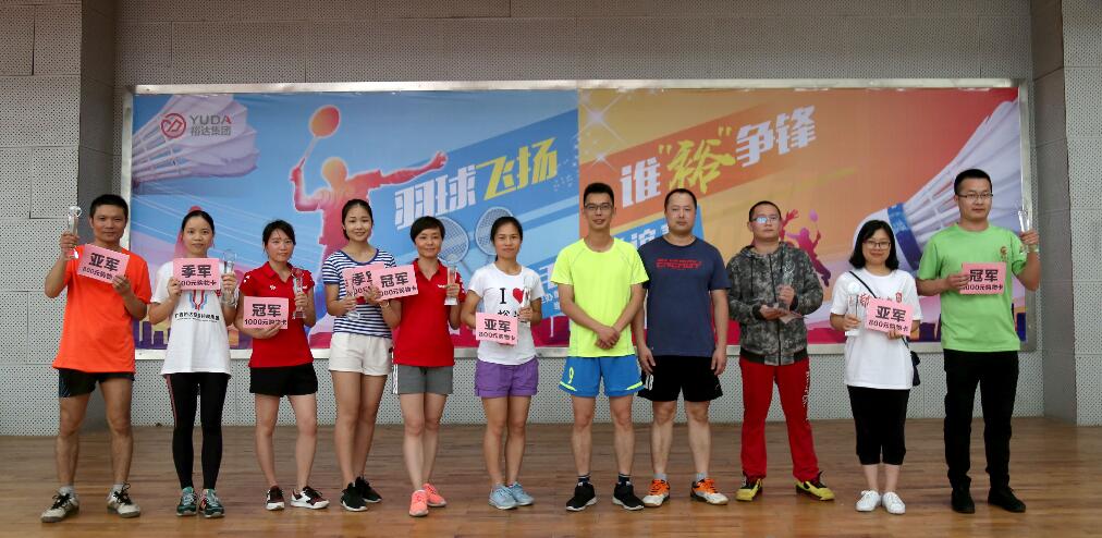 隨著比賽的進(jìn)行,參賽隊員們漸漸進(jìn)入狀態(tài),比賽場面也越發(fā)激烈。經(jīng)過一天的激烈廝殺,2018年裕達(dá)集團(tuán)“羽球飛揚,誰裕爭鋒”羽毛球聯(lián)誼賽也正是落下帷幕。比賽共產(chǎn)生9名獲獎隊伍,永佳公司、投資發(fā)展中心&產(chǎn)研發(fā)中心、工程管理中心&金秀旅游公司&聯(lián)睿監(jiān)理公司分別獲得男子雙打冠亞季軍;物業(yè)公司、武宣公司、營銷一組分別獲得女子雙打冠亞季軍;物業(yè)公司、地產(chǎn)二公司、工程管理中心&金秀旅游公司&聯(lián)睿監(jiān)理公司分別獲得男女混合打冠亞季軍。
