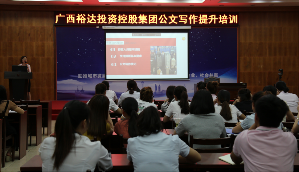 為進一步提高日常公文的寫作能力,增強員工的公文寫作素質(zhì),掌握常用快速的寫作方法和注意事項。培訓中心于2018年5月23日晚上在集團七樓大會議室組織開展公文寫作提升培訓。參訓對象為2018年入職的部分新員工及部分后備梯隊人才,共六十多人。投資公司、武宣公司、地產(chǎn)四公司等通過視頻參與培訓。本次培訓由行政管理中心總裁辦副主任韋焦妮擔任主講。