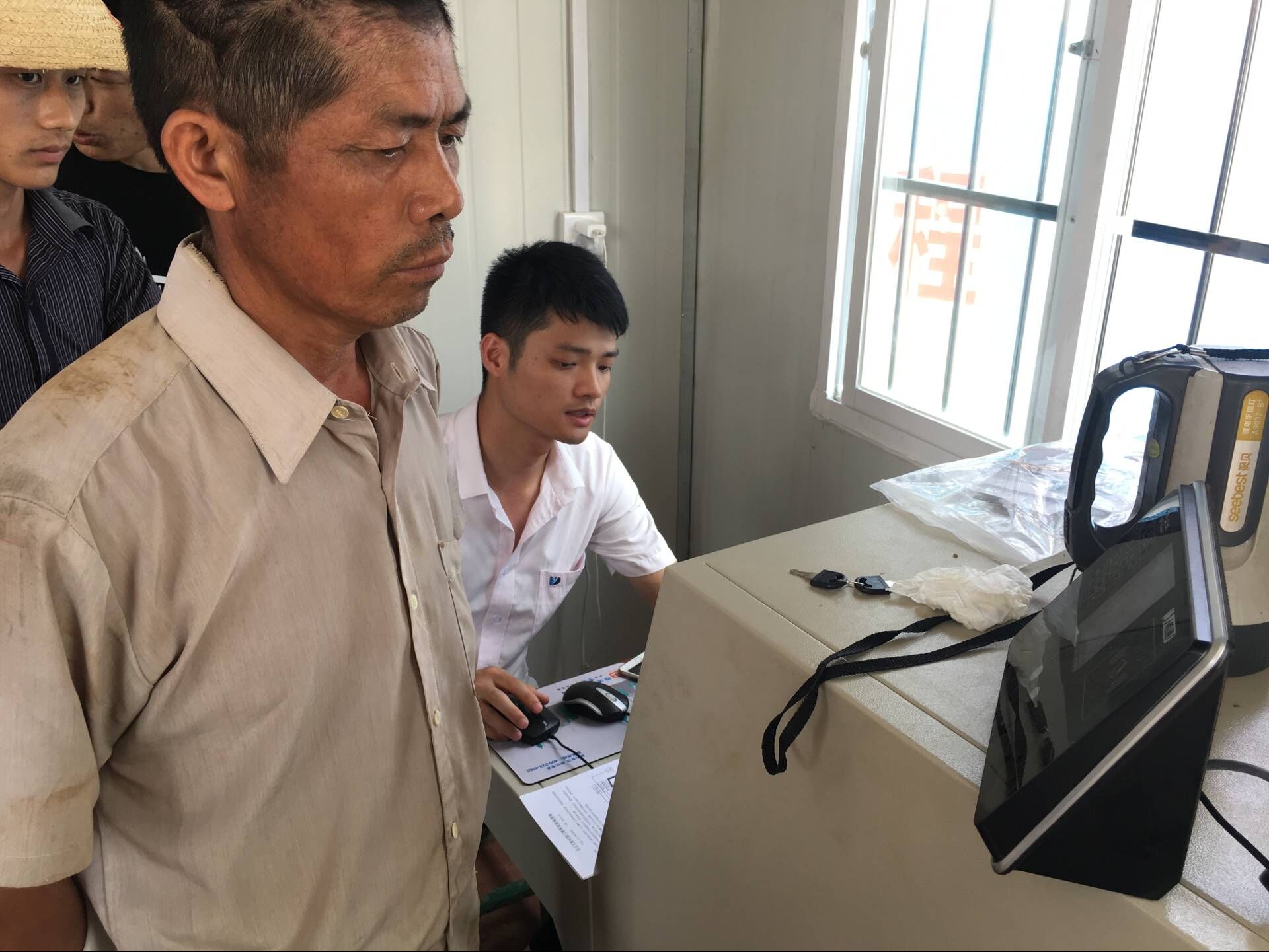 圖為正在進(jìn)行勞務(wù)實(shí)名制系統(tǒng)錄入