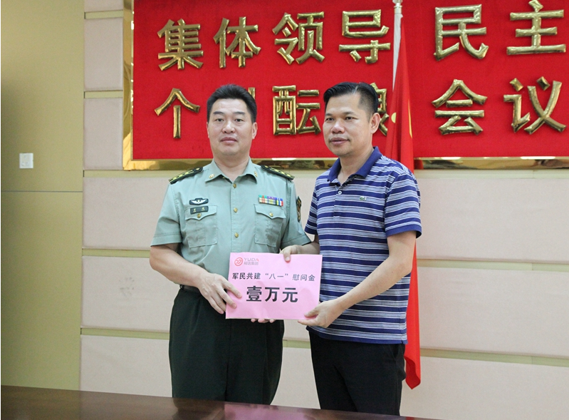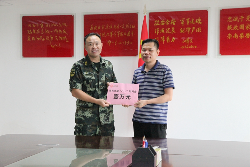 在“八一”建軍節(jié)來臨之際,為增進(jìn)與部隊(duì)官兵的情感交流,共話軍民魚水情誼,7月30日,由集團(tuán)副總裁梁鋒、總裁助理?xiàng)钯O敏、楊碩、行政副總監(jiān)羅桂平、行政部經(jīng)理覃婷婷等一行領(lǐng)導(dǎo)組成慰問團(tuán),先后到武警來賓支隊(duì)、廣西陸軍預(yù)備役兵師第一團(tuán)、來賓市消防支隊(duì)、中國人民解放軍廣西來賓軍分區(qū)開展八一慰問活動(dòng),向部隊(duì)官兵表達(dá)了崇高的敬意并送去節(jié)日祝福。