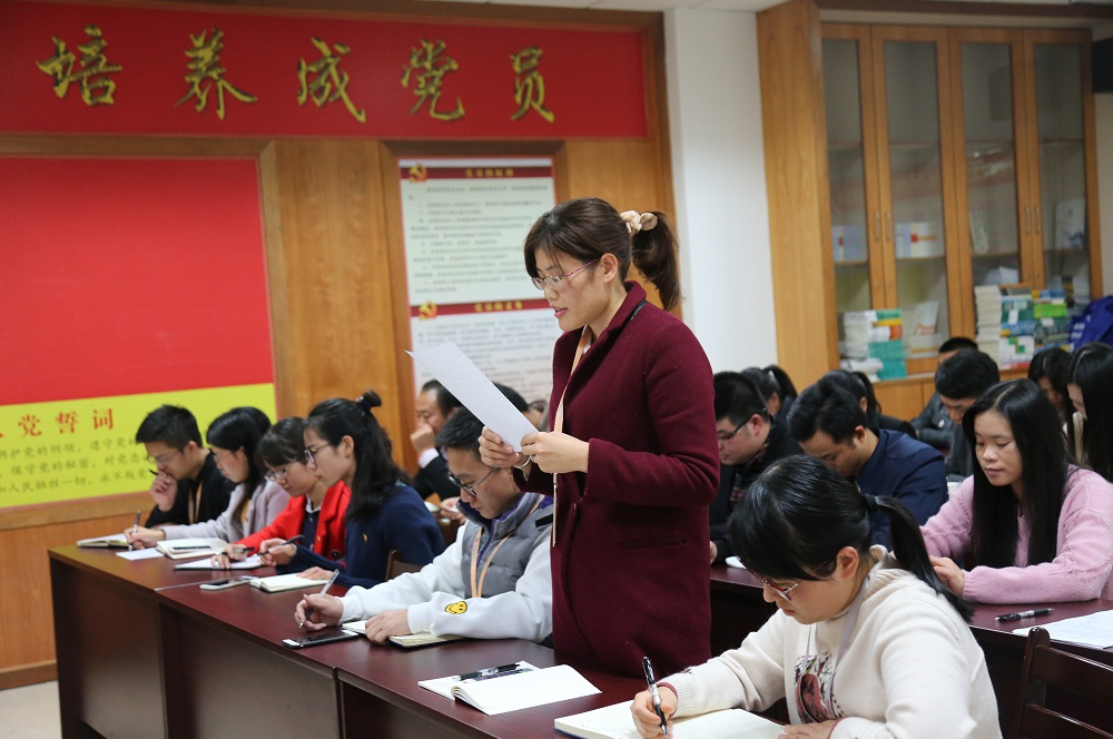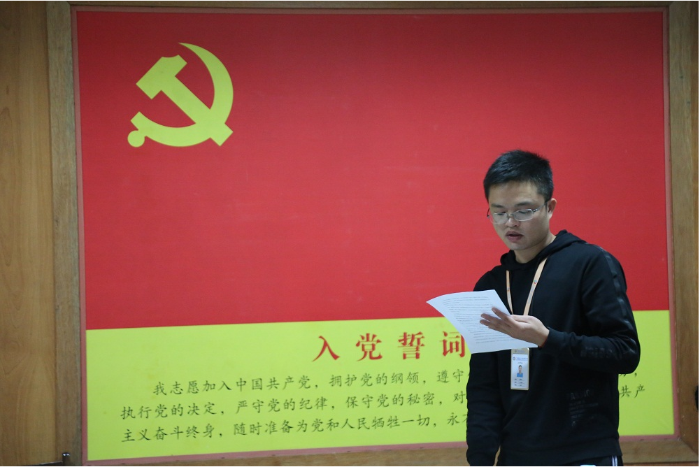 發(fā)展對(duì)象黃雄光向大會(huì)匯報(bào)對(duì)黨的認(rèn)識(shí)、入黨動(dòng)機(jī)等