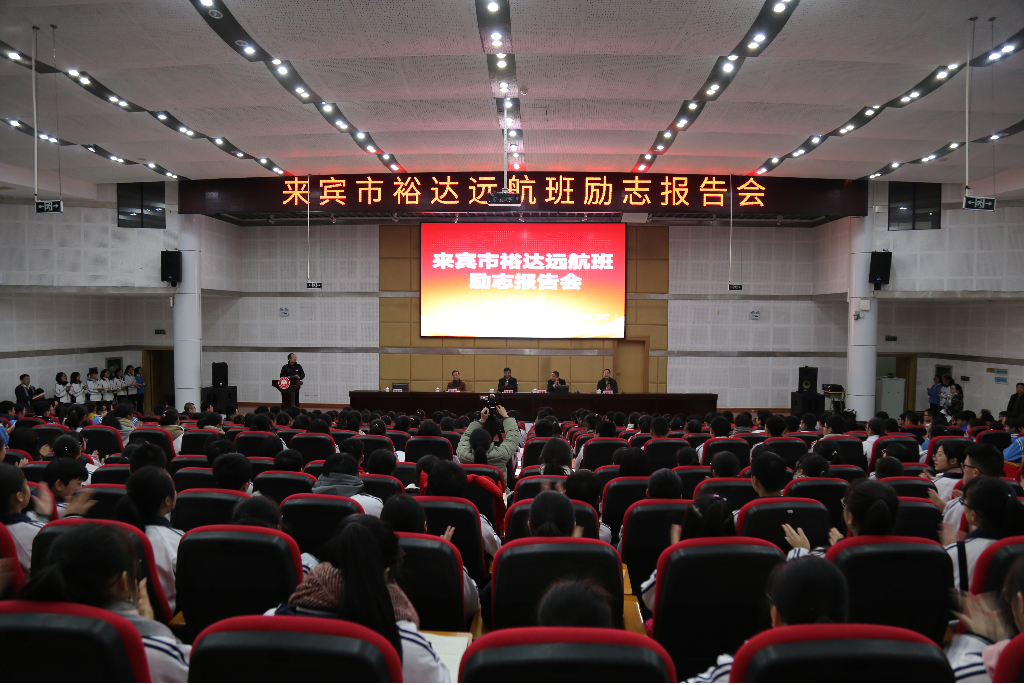 2019年1月7日下午4點(diǎn)15分,來(lái)賓市“裕達(dá)遠(yuǎn)航班”勵(lì)志報(bào)告會(huì)在來(lái)賓市高級(jí)中學(xué)圖書(shū)館一樓報(bào)告廳順利召開(kāi)。來(lái)賓市政協(xié)主席韋善國(guó)、市政協(xié)秘書(shū)長(zhǎng)廖妙靈,市教育局黨組書(shū)記盤(pán)啟亮及我集團(tuán)董事長(zhǎng)兼總裁鄧亞保出席了報(bào)告會(huì)。