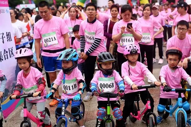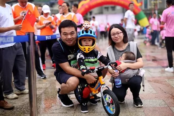 比賽現(xiàn)場有一組特別有意思的家庭選手,2歲的漓騎兒童平衡車小騎士吳桐宇和爸爸媽媽及4個月的弟弟,一家四口專程從桂林來到金秀參加比賽,吳桐宇騎著他心愛的兒童平衡車在爸爸媽媽和抱在懷里的弟弟的陪同下,一家四口共同參與五公里的馬拉松挑戰(zhàn)。