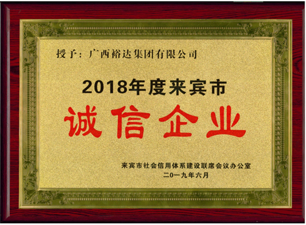 6月14日,來賓市征信普惠小微與民營企業(yè)工作推進(jìn)會暨2019年誠信建設(shè)主題實(shí)踐活動啟動儀式在來賓市人民政府多功能廳舉行,廣西裕達(dá)集團(tuán)有限公司在該活動上收到表彰,榮獲“2018年度來賓市誠信企業(yè)”榮譽(yù)稱號。