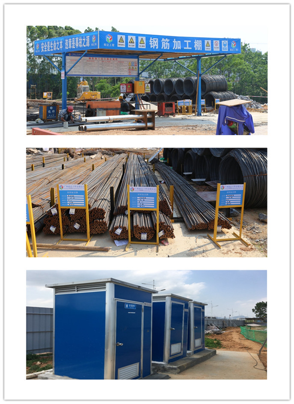 當(dāng)天會(huì)議分為現(xiàn)場(chǎng)參觀、座談交流及點(diǎn)評(píng)總結(jié)等環(huán)節(jié)。首先,公司總經(jīng)理權(quán)龍福帶隊(duì)前往中國(guó)移動(dòng)廣西公司來(lái)賓綜合業(yè)務(wù)接入機(jī)房工程項(xiàng)目現(xiàn)場(chǎng)進(jìn)行參觀。參觀中,項(xiàng)目負(fù)責(zé)人張雙榮對(duì)現(xiàn)場(chǎng)各區(qū)域基本情況、施工進(jìn)度、質(zhì)量安全管控等逐一進(jìn)行介紹。大家從現(xiàn)場(chǎng)介紹及現(xiàn)場(chǎng)參觀相結(jié)合中更為直觀感受該項(xiàng)目的各項(xiàng)流程運(yùn)營(yíng)情況。縱觀整個(gè)項(xiàng)目現(xiàn)場(chǎng),我們能醒目的看到:一是自動(dòng)化的車輪自動(dòng)沖洗鋼平臺(tái),由系統(tǒng)感應(yīng),系統(tǒng)設(shè)置后,車輛通過(guò)鋼平臺(tái),移動(dòng)噴水沖洗,減少專人清理;二是定型鋼筋加工棚,采用工字鋼加工制作,寬度統(tǒng)一為6米,高度4米,分兩層隔板防護(hù),桿件連接,安全可靠,安裝拆除方便,可多次周轉(zhuǎn)使用;三是統(tǒng)一的“三”電箱,即總、分、配相統(tǒng)一規(guī)范,做到一機(jī)一閘;四是4個(gè)視頻監(jiān)控?cái)z像頭在不停的轉(zhuǎn)動(dòng)時(shí)刻監(jiān)視不同的區(qū)域,監(jiān)視無(wú)死角;五是方便、美觀的移動(dòng)式廁所,節(jié)能環(huán)保、易于移動(dòng)等等。據(jù)了解,該項(xiàng)目應(yīng)用BIM技術(shù)布置總平面布置圖,準(zhǔn)確計(jì)算場(chǎng)地建設(shè)臨建工程的工程量及成本投入,并直觀布置、體現(xiàn)三維效果。