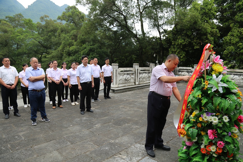東蘭縣是全國著名的革命老區(qū),是全國最早開展農民運動的地區(qū)之一,是廣西農民運動的發(fā)祥地,是韋拔群、韋國清的故鄉(xiāng),為讓集團黨員追尋革命先烈的足跡,銘記共產黨人的初心,在建黨98周年之際,2019年7月1日至2日集團黨支部書記謝家偉帶領支部15名黨員代表赴東蘭縣開展“不忘初心、牢記使命”紅色教育活動,集團公司董事長兼總裁鄧亞保、廣西福毅德投資有限公司董事長黃毅出席本次活動,城北街道黨工委組織干事盧玉妮受邀參加活動。