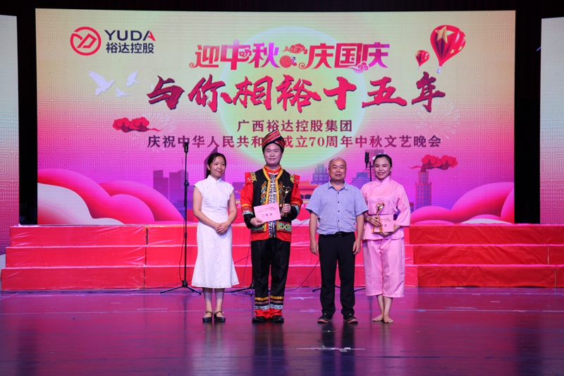 秋月朗照,丹桂飄香,值此中秋佳節(jié)來(lái)臨之際,為發(fā)揚(yáng)集團(tuán)企業(yè)文化,豐富集團(tuán)員工業(yè)余文化生活,展現(xiàn)員工風(fēng)采。9月10日晚,廣西裕達(dá)控股集團(tuán)在來(lái)賓大劇院舉辦“與你相裕十五年”中秋主題文藝晚會(huì)。裕達(dá)集團(tuán)董事副總裁歐陽(yáng)玲、設(shè)計(jì)總監(jiān)蔣懷偉及來(lái)賓區(qū)域全體員工和員工家屬共800余人歡聚一堂,喜迎節(jié)日到來(lái)。