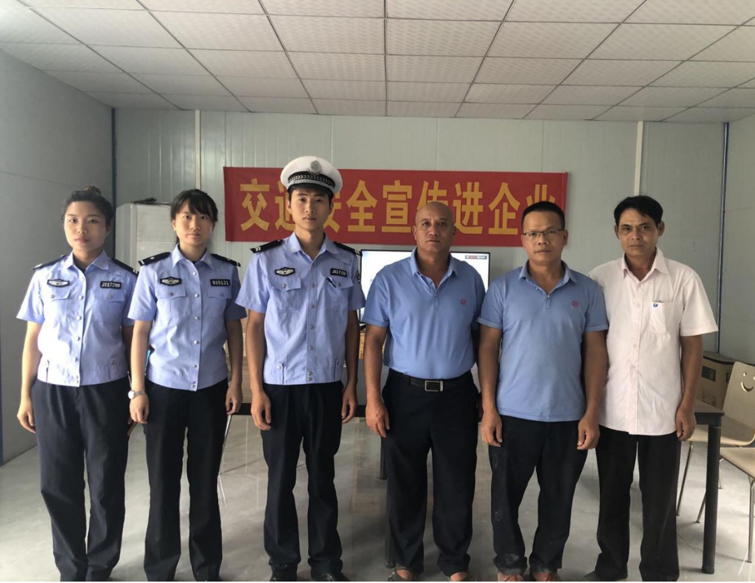 (金秀縣交警大隊宣傳科與桐木攪拌站管理人員合影)