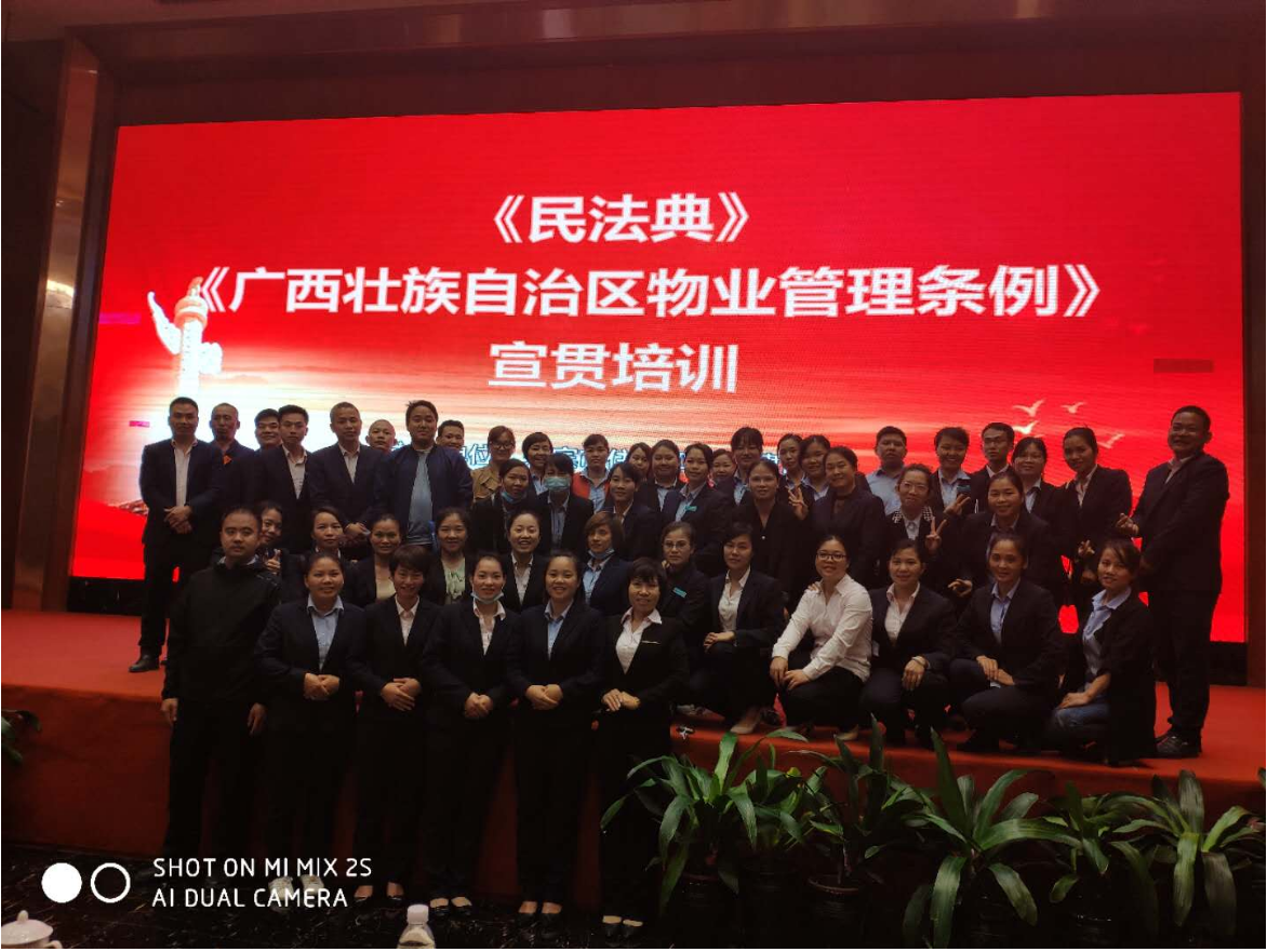 《民法典》、《廣西壯族自治區(qū)管理管理條例》與我們的工作和生活息息相關(guān),密不可分。此次培訓(xùn),使員工更加意識到了我們作為物業(yè)服務(wù)工作者,要加強樹立法治意識,立足職責(zé)定位,充分運用法治思維、法治方式開展工作、處理問題,同時在工作和生活中,要認真學(xué)習(xí)、自覺遵守和正確使用《民法典》、《廣西壯族自治區(qū)管理管理條例》,全力維護公司的合法權(quán)益,推動公司穩(wěn)步健康高質(zhì)量發(fā)展。