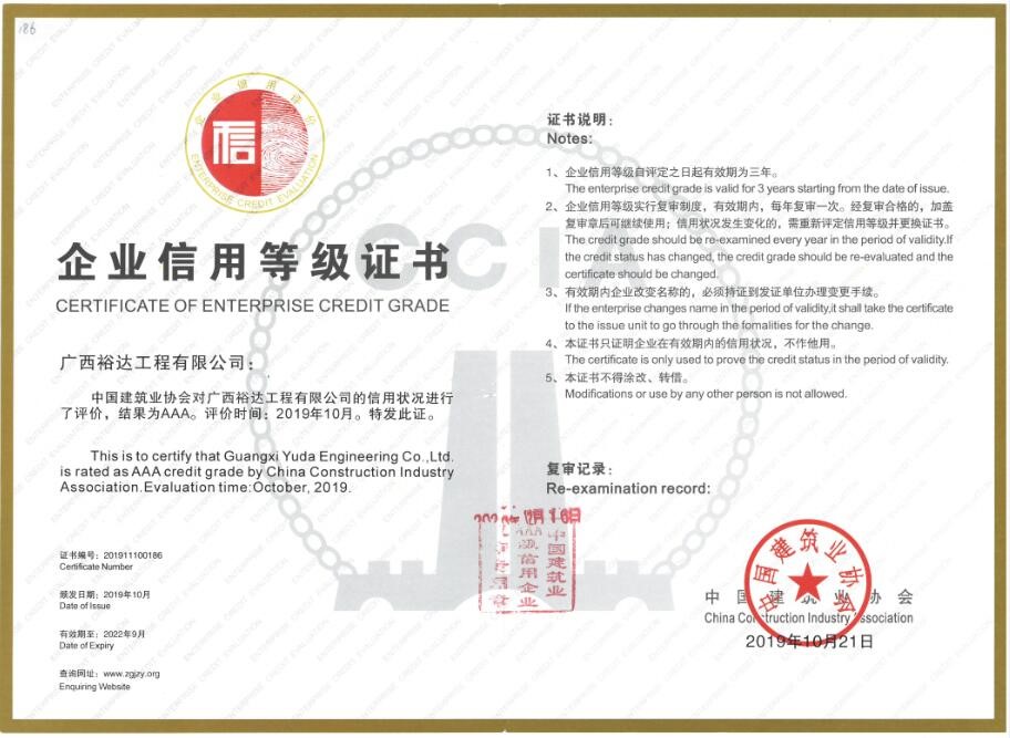 近日,公司順利通過中國建筑業(yè)協(xié)會(huì)“全國建筑業(yè)AAA級(jí)信用企業(yè)”復(fù)審,公司再獲“AAA級(jí)信用企業(yè)”榮譽(yù)稱號(hào)。
