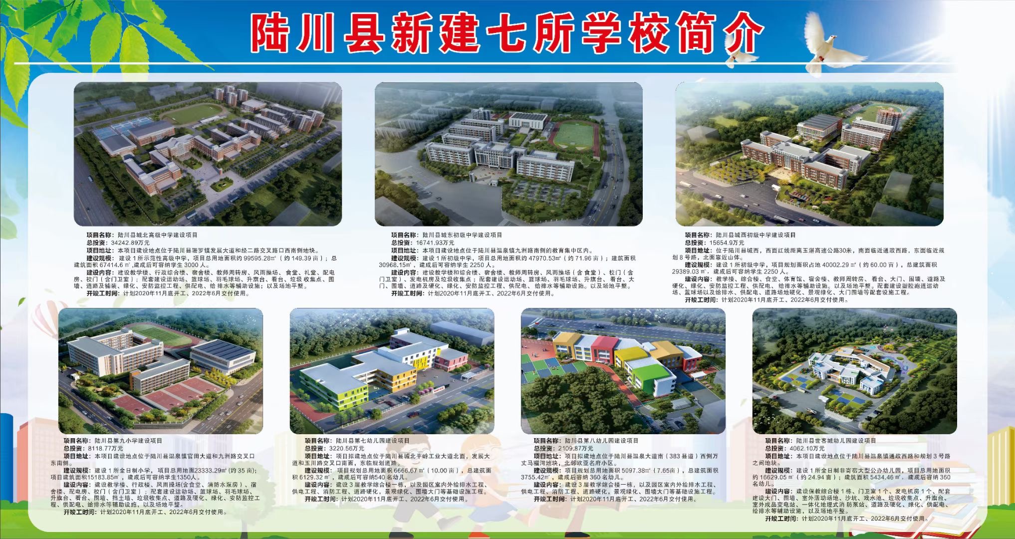據(jù)悉,陸川縣新建七所學校項目包括七個子項目,即新建1所高中、2所初中、1所小學和3所幼兒園(包括陸川縣城北高級中學、陸川縣城東初級中學、陸川縣城西初級中學、陸川縣第九小學、陸川縣第七幼兒園、陸川縣第八幼兒園、陸川縣世客城幼兒園),總建筑面積約15.87萬㎡,項目估算總投資約8.42億元,工期為730天。