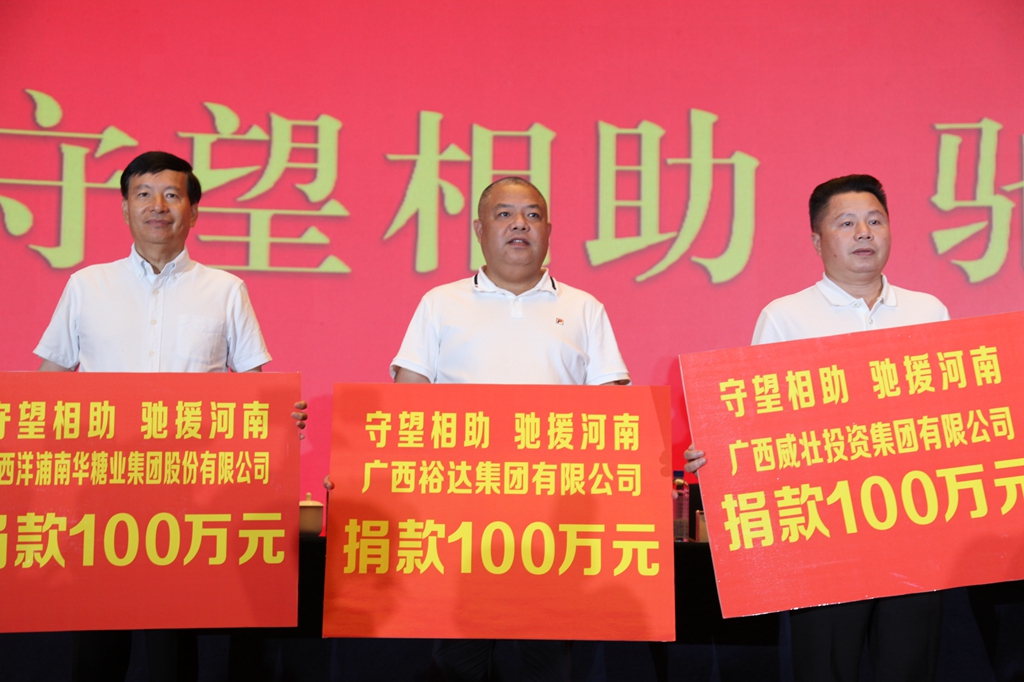 7月23日下午,“守望相助,馳援河南”捐款活動(dòng)在百色飯店一樓國(guó)際會(huì)議中心舉行,此次活動(dòng)由自治區(qū)工商聯(lián)主辦,廣西裕達(dá)集團(tuán)有限公司等8家廣西民營(yíng)企業(yè)參與,我集團(tuán)公司董事長(zhǎng)兼總裁鄧亞保代表參加。