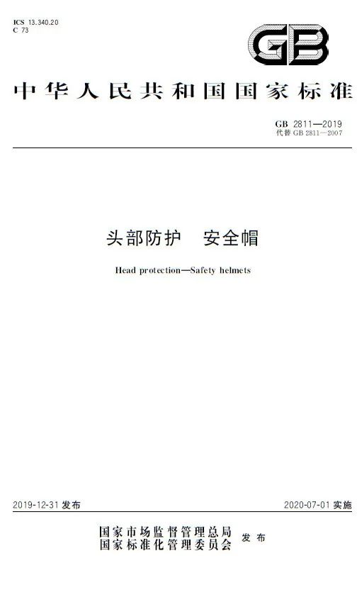 國(guó)家市場(chǎng)監(jiān)管總局、國(guó)家標(biāo)準(zhǔn)委批準(zhǔn)發(fā)布新版安全帽標(biāo)準(zhǔn)GB2811-2019《頭部防護(hù)