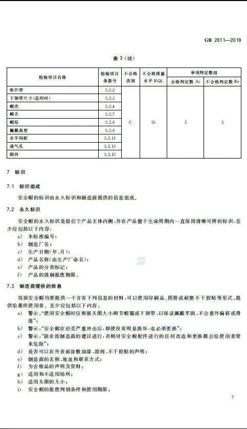 新版的GB2811-2019規(guī)定,在安全帽內(nèi)側(cè),全生命周期內(nèi)必須清晰保持以下6項(xiàng)標(biāo)識(shí):