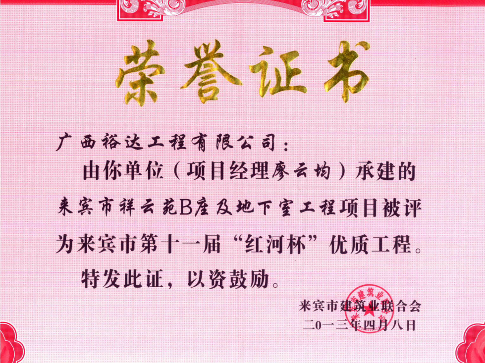 上一篇:2013年來(lái)賓市第十一屆“紅河杯”優(yōu)質(zhì)工程