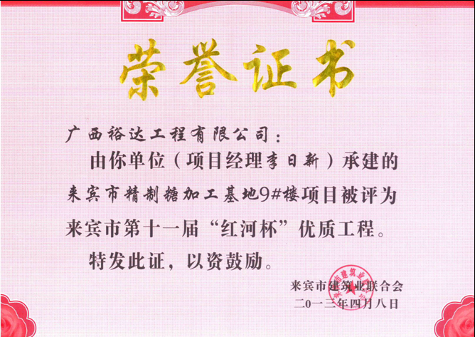 上一篇:2013年來賓市第十一屆“紅河杯”優(yōu)質(zhì)工程