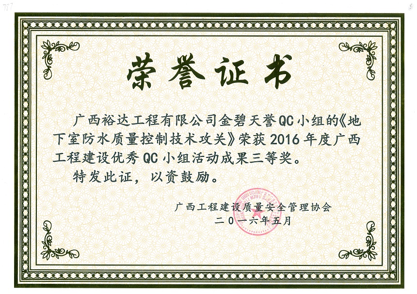 下一篇:2016年度廣西工程建設(shè)優(yōu)秀QC小組活動(dòng)成果三等獎(jiǎng)《提高外墻涂料施工合格率》-官塘小苑項(xiàng)目
