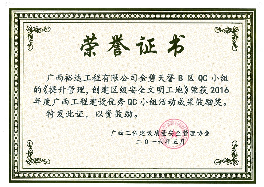 下一篇:2016年度廣西工程建設(shè)優(yōu)秀QC小組活動成果鼓勵獎《提高現(xiàn)澆結(jié)構(gòu)模板安裝合格率》-綠水仙城中央城市廣場