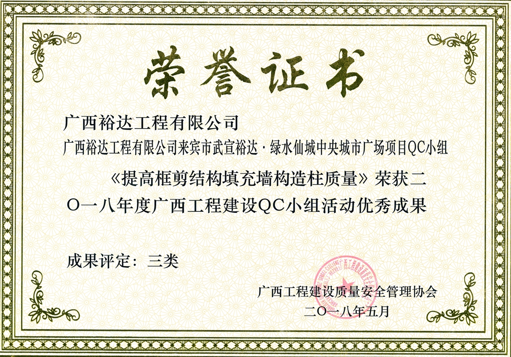 2018年度廣西工程建設(shè)QC小組活動(dòng)優(yōu)秀成果
