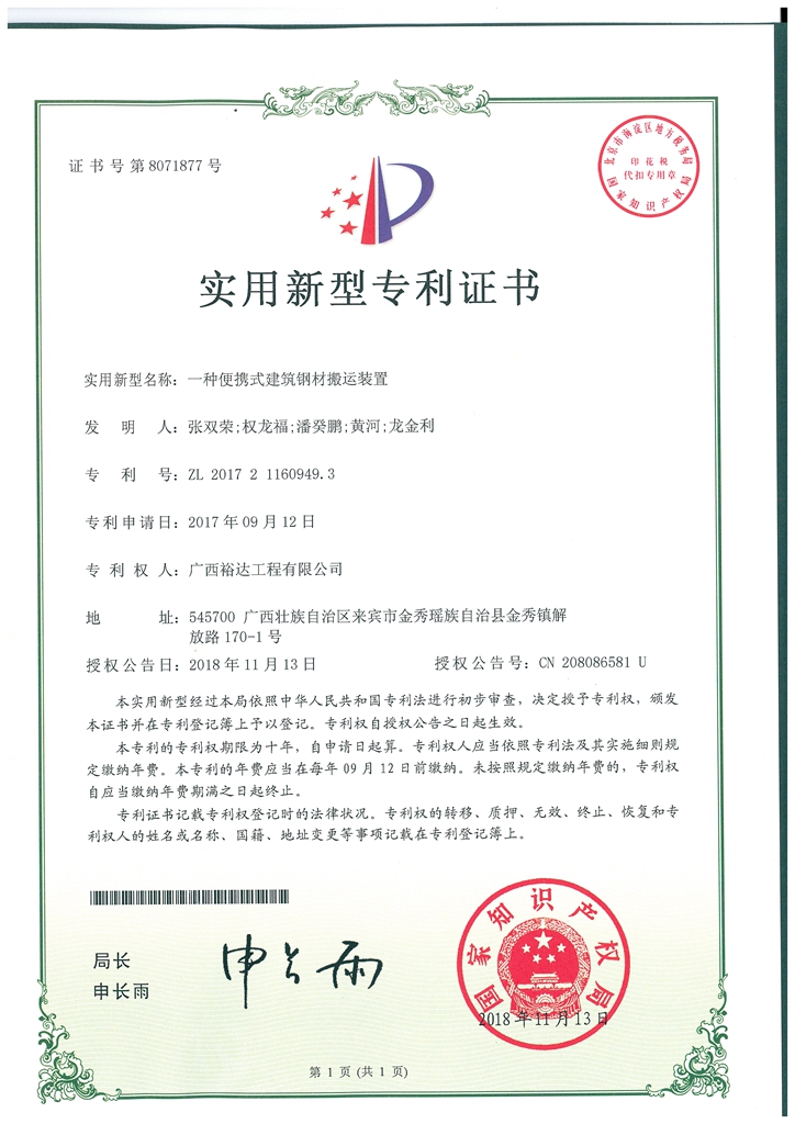 上一篇:2018年實用新型專利證書(一種園林種植用挖坑裝置)