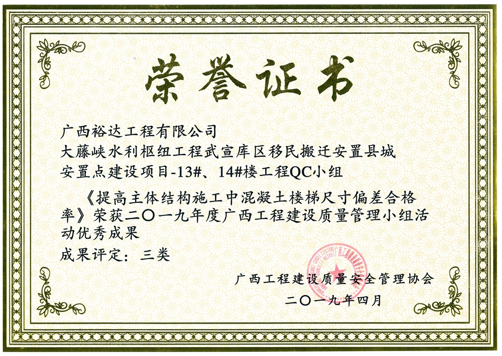 下一篇:2019年度廣西工程建設(shè)質(zhì)量管理小組活動(dòng)優(yōu)秀成果《提高輪扣式鋼管模板支撐系統(tǒng)搭設(shè)質(zhì)量》