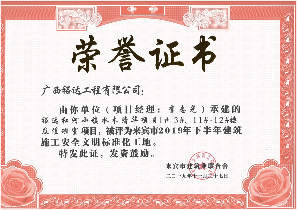 上一篇:裕達(dá)天悅城·萊茵公館2#、5#樓及地下室被評(píng)為來(lái)賓市2019年下半年建筑施工安全文明標(biāo)準(zhǔn)化工地(項(xiàng)目經(jīng)理:胡斌)