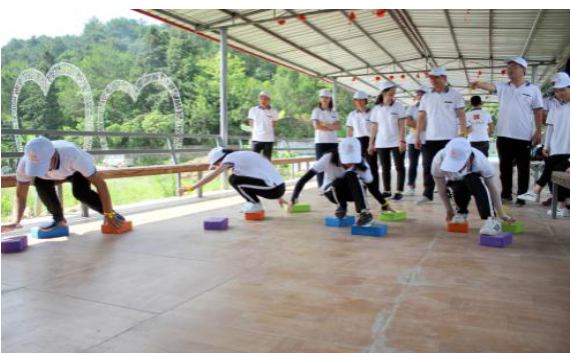 第三個(gè)游戲移行換位,主要培養(yǎng)了團(tuán)結(jié)一致、克服困難、協(xié)調(diào)能力增進(jìn)隊(duì)員間相互信任和理解的團(tuán)隊(duì)精神。