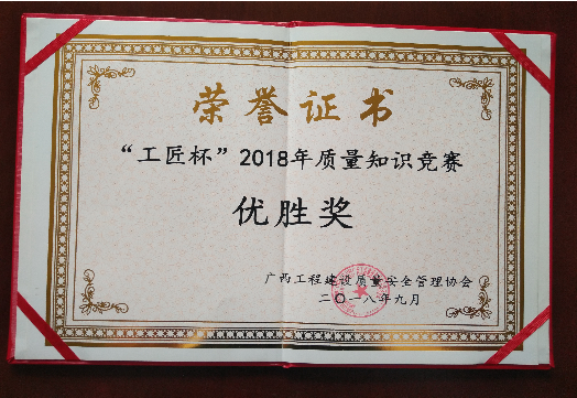 廣西裕達工程有限公司喜獲全區(qū)“工匠杯”2018年質量知識競賽佳績