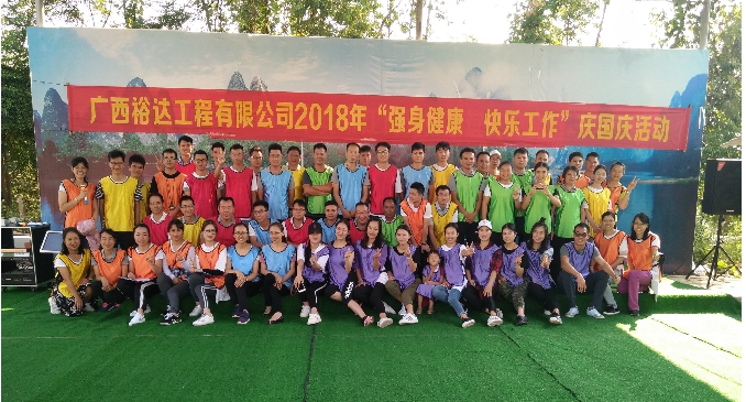 為慶祝“國慶”69周年,豐富員工的文體生活,展示員工良好精神面貌,推進(jìn)公司精神文明建設(shè)、增強(qiáng)員工團(tuán)隊(duì)協(xié)作力及工作凝聚力。9月30日,工程公司在來賓銘禹山莊舉辦“強(qiáng)身健體、快樂工作”慶國慶活動。