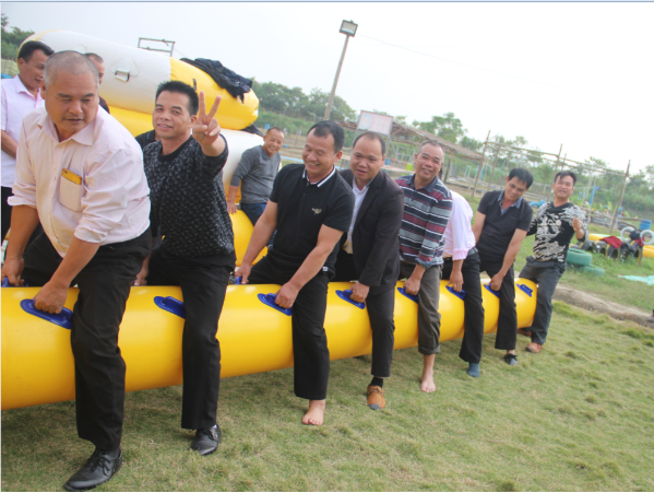 《毛毛蟲競速》想必大家都胸有成竹地認為:那么短的競速路程,必定穩(wěn)拿第一。不過沒口號、沒統(tǒng)一的步調,高矮胖瘦不一的一群人,沒試過還真不知道第一名花落誰家。競速的隊伍全力以赴,觀戰(zhàn)的伙伴們躍躍欲試,也為場上隊員捏一把汗。整個游戲展現(xiàn)了團隊的團結協(xié)作精神。