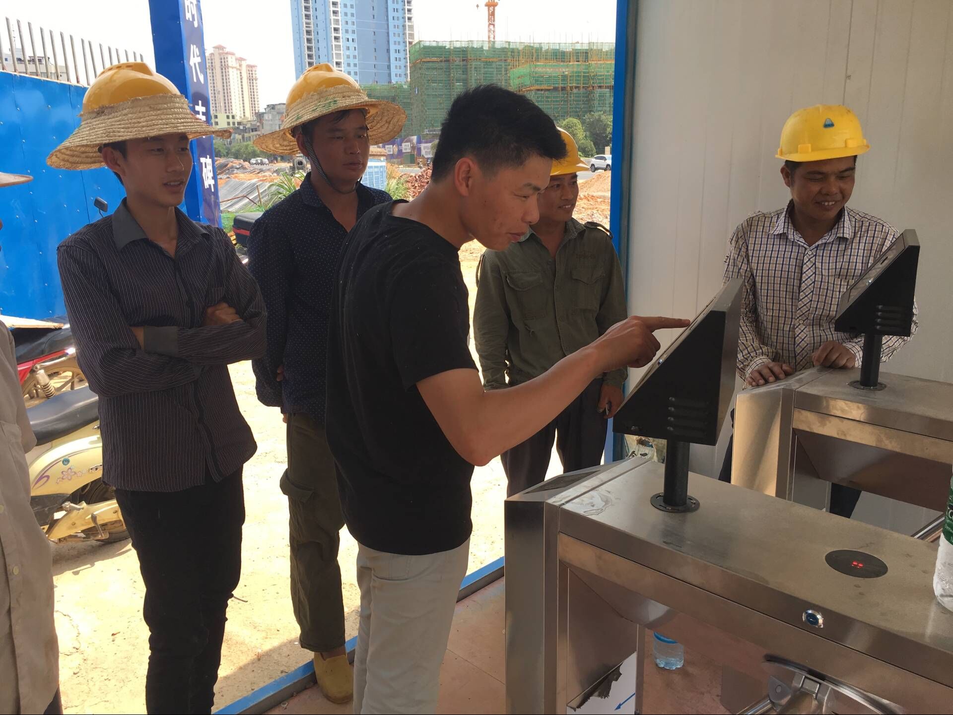 圖為工人正在試行人臉識(shí)別進(jìn)場(chǎng)