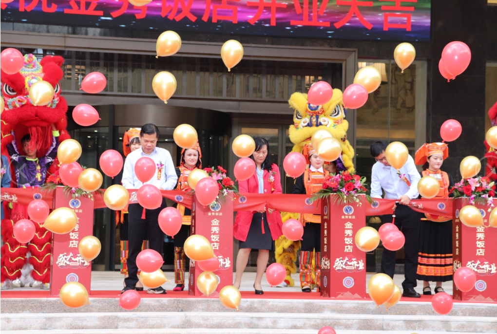 本次開業(yè)典禮規(guī)模盛大,現(xiàn)場(chǎng)鮮花錦簇,場(chǎng)面熱鬧非凡,儀式設(shè)有剪彩環(huán)節(jié)、睡獅點(diǎn)睛、接財(cái)鬧場(chǎng)等精彩紛呈的表演。參加慶典的金秀縣 “四家班子”領(lǐng)導(dǎo)代表與我集團(tuán)領(lǐng)導(dǎo)代表一行9人共同為金秀飯店的開業(yè)剪彩。金秀縣政協(xié)主席梁愛華、裕達(dá)控股集團(tuán)副總裁梁鋒、裕達(dá)控股集團(tuán)執(zhí)行副總裁兼來(lái)賓縣區(qū)域公司董事長(zhǎng)李夢(mèng)曉、裕達(dá)控股集團(tuán)總裁助理兼旅游集團(tuán)總裁何道軍4位領(lǐng)導(dǎo)共同為睡獅點(diǎn)睛,將本次開業(yè)典禮推向高潮。