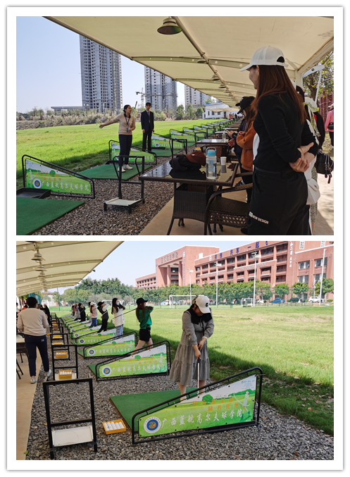 “雙腳站平,腰背挺直,分“三點(diǎn)”走,目光注視高爾夫球…”,專(zhuān)業(yè)高爾夫教練從站姿、握桿、發(fā)力點(diǎn)等幾大基礎(chǔ)知識(shí)教女員工們?nèi)胧郑俳?jīng)過(guò)教練的專(zhuān)業(yè)指導(dǎo)與動(dòng)作矯正,大家漸漸有了專(zhuān)業(yè)高爾夫選手的姿態(tài),“這個(gè)姿勢(shì)漂亮”“力度到位”“收桿標(biāo)準(zhǔn)” ........這些贊美詞不斷的從教練口中說(shuō)出。
