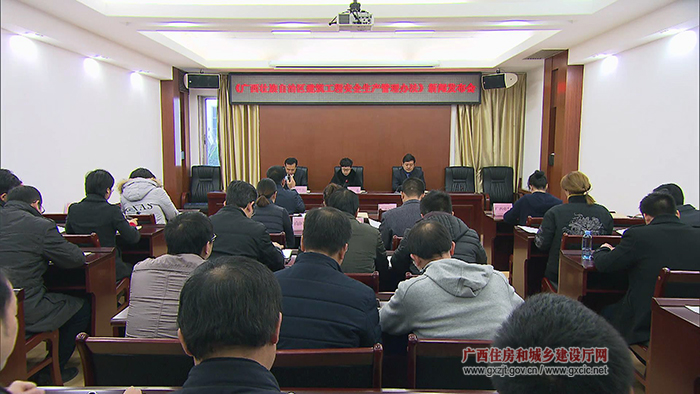 2月7日,自治區(qū)法制辦公室、自治區(qū)住房城鄉(xiāng)建設(shè)廳在南寧召開(kāi)《廣西壯族自治區(qū)建筑工程安全生產(chǎn)管理辦法》(以下簡(jiǎn)稱《辦法》)新聞發(fā)布會(huì)。新出臺(tái)的《辦法》將于2018年3月1日起施行。自治區(qū)法制辦公室副主任潘東、自治區(qū)住房城鄉(xiāng)建設(shè)廳副廳長(zhǎng)楊綠峰、副巡視員莫蘭新出席發(fā)布會(huì)并講話。