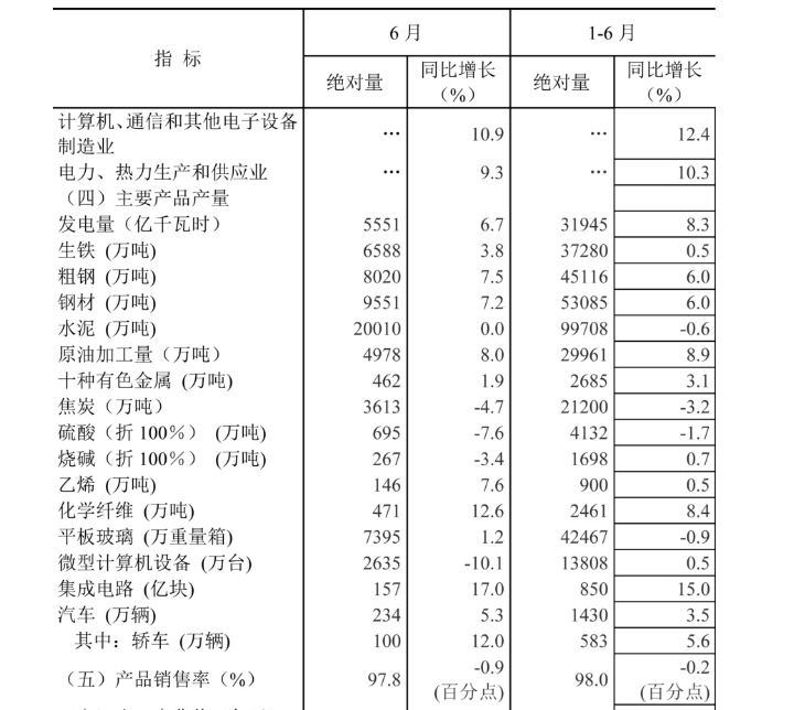 第三產(chǎn)業(yè)中,基礎(chǔ)設(shè)施投資(不含電力、熱力、燃氣及水生產(chǎn)和供應(yīng)業(yè))同比增長7.3%,增速比1-5月份回落2.1個百分點。其中,水利管理業(yè)投資增長0.4%,增速回落3.5個百分點;公共設(shè)施管理業(yè)投資增長5.8%,增速回落2.8個百分點;道路運輸業(yè)投資增長10.9%,增速回落3.9個百分點;鐵路運輸業(yè)投資下降10.3%,降幅收窄1.1個百分點。