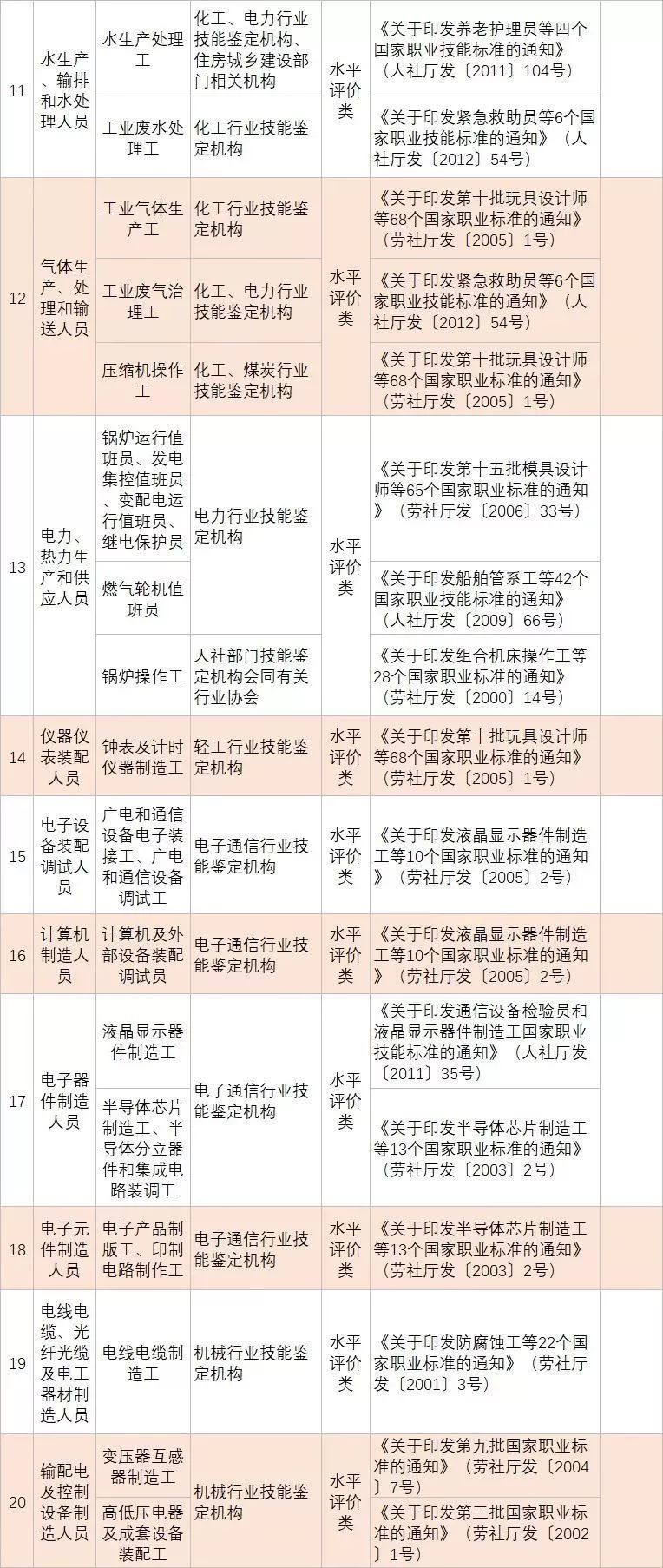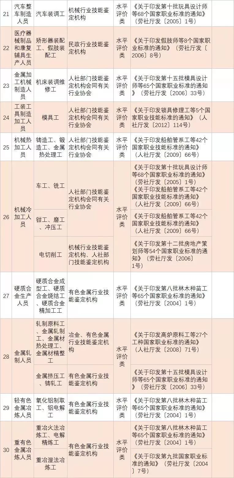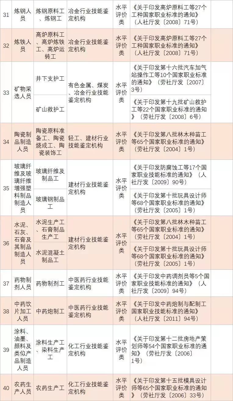 (四)深化技能人員職業(yè)資格制度改革。鞏固職業(yè)資格改革成果,完善國家職業(yè)資格目錄。對準(zhǔn)入類職業(yè)資格,繼續(xù)保留在國家職業(yè)資格目錄內(nèi)。對關(guān)系公共利益或涉及國家安全、公共安全、人身健康、生命財(cái)產(chǎn)安全的水平評價(jià)類職業(yè)資格,要依法依規(guī)轉(zhuǎn)為準(zhǔn)入類職業(yè)資格。對與國家安全、公共安全、人身健康、生命財(cái)產(chǎn)安全關(guān)系不密切的水平評價(jià)類職業(yè)資格,要逐步調(diào)整退出目錄,對其中社會通用性強(qiáng)、專業(yè)性強(qiáng)、技術(shù)技能要求高的職業(yè)(工種),可根據(jù)經(jīng)濟(jì)社會發(fā)展需要,實(shí)行職業(yè)技能等級認(rèn)定。