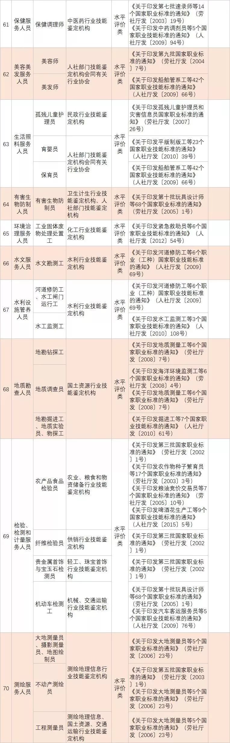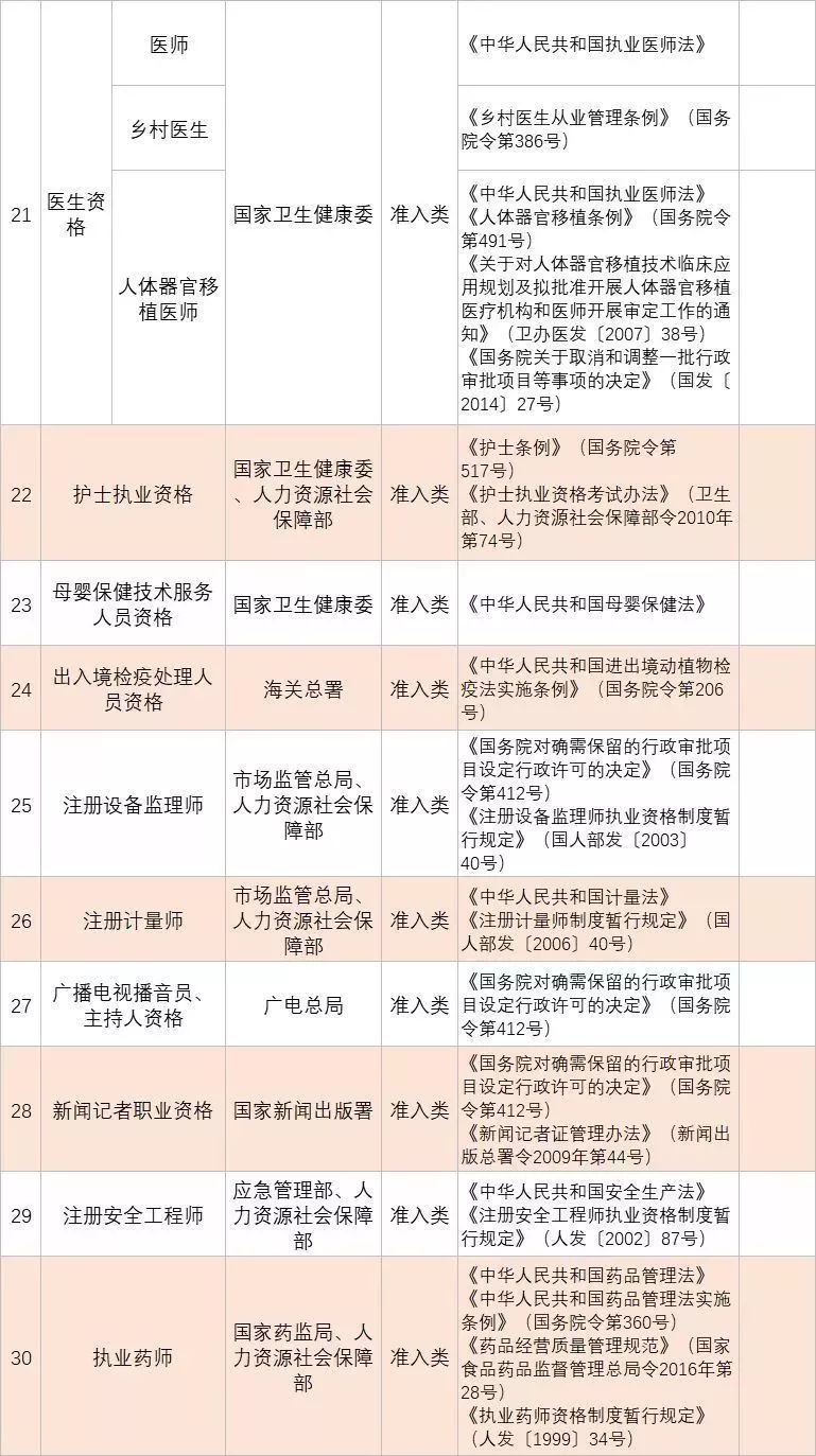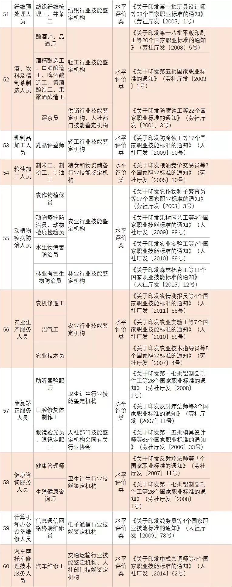(四)深化技能人員職業(yè)資格制度改革。鞏固職業(yè)資格改革成果,完善國家職業(yè)資格目錄。對準(zhǔn)入類職業(yè)資格,繼續(xù)保留在國家職業(yè)資格目錄內(nèi)。對關(guān)系公共利益或涉及國家安全、公共安全、人身健康、生命財(cái)產(chǎn)安全的水平評價(jià)類職業(yè)資格,要依法依規(guī)轉(zhuǎn)為準(zhǔn)入類職業(yè)資格。對與國家安全、公共安全、人身健康、生命財(cái)產(chǎn)安全關(guān)系不密切的水平評價(jià)類職業(yè)資格,要逐步調(diào)整退出目錄,對其中社會通用性強(qiáng)、專業(yè)性強(qiáng)、技術(shù)技能要求高的職業(yè)(工種),可根據(jù)經(jīng)濟(jì)社會發(fā)展需要,實(shí)行職業(yè)技能等級認(rèn)定。