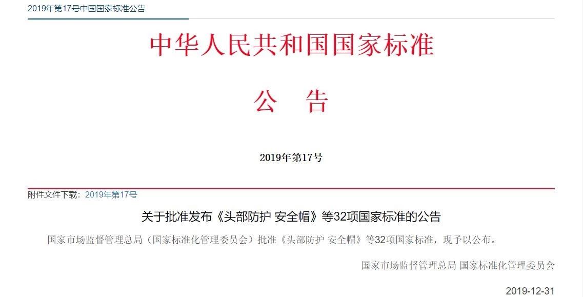 國(guó)家市場(chǎng)監(jiān)管總局、國(guó)家標(biāo)準(zhǔn)委批準(zhǔn)發(fā)布新版安全帽標(biāo)準(zhǔn)GB2811-2019《頭部防護(hù)