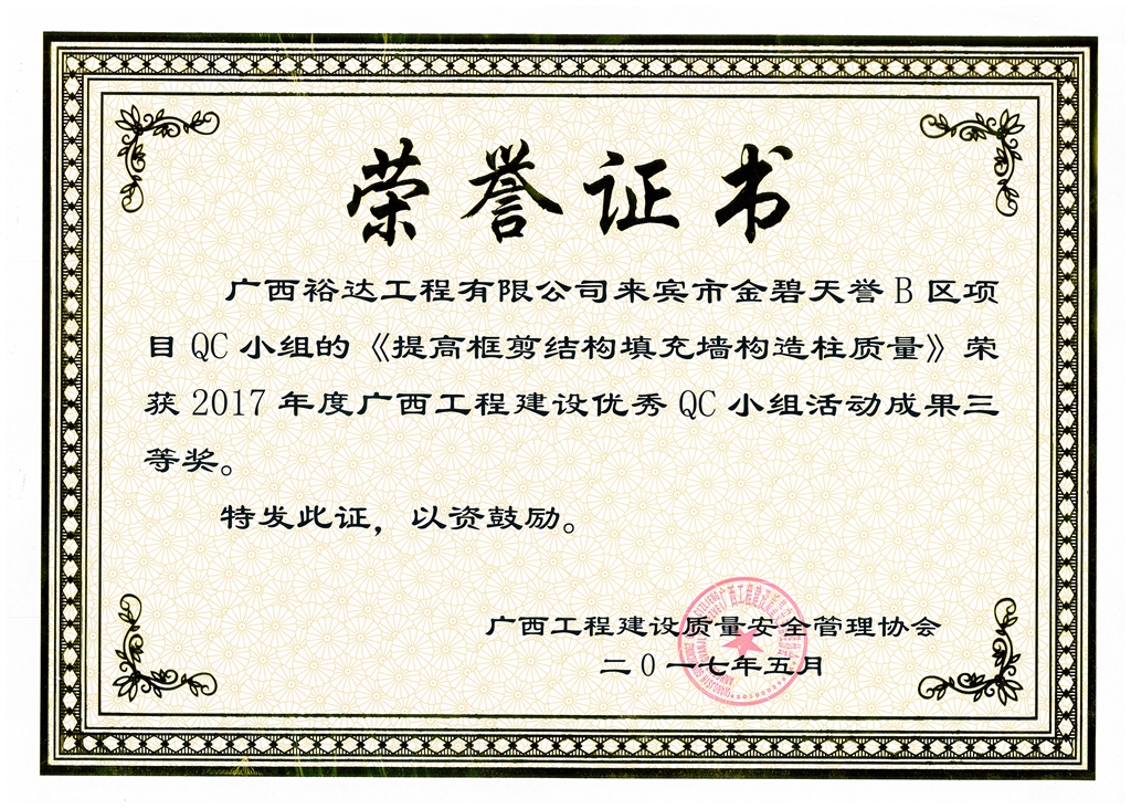 上一篇:2017年廣西工程建設(shè)優(yōu)秀QC小組活動(dòng)成果三等獎(jiǎng)