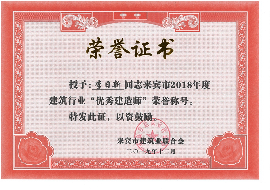 上一篇:盧照程來賓市2018年度建筑行業(yè)“優(yōu)秀建造師”榮譽(yù)稱號