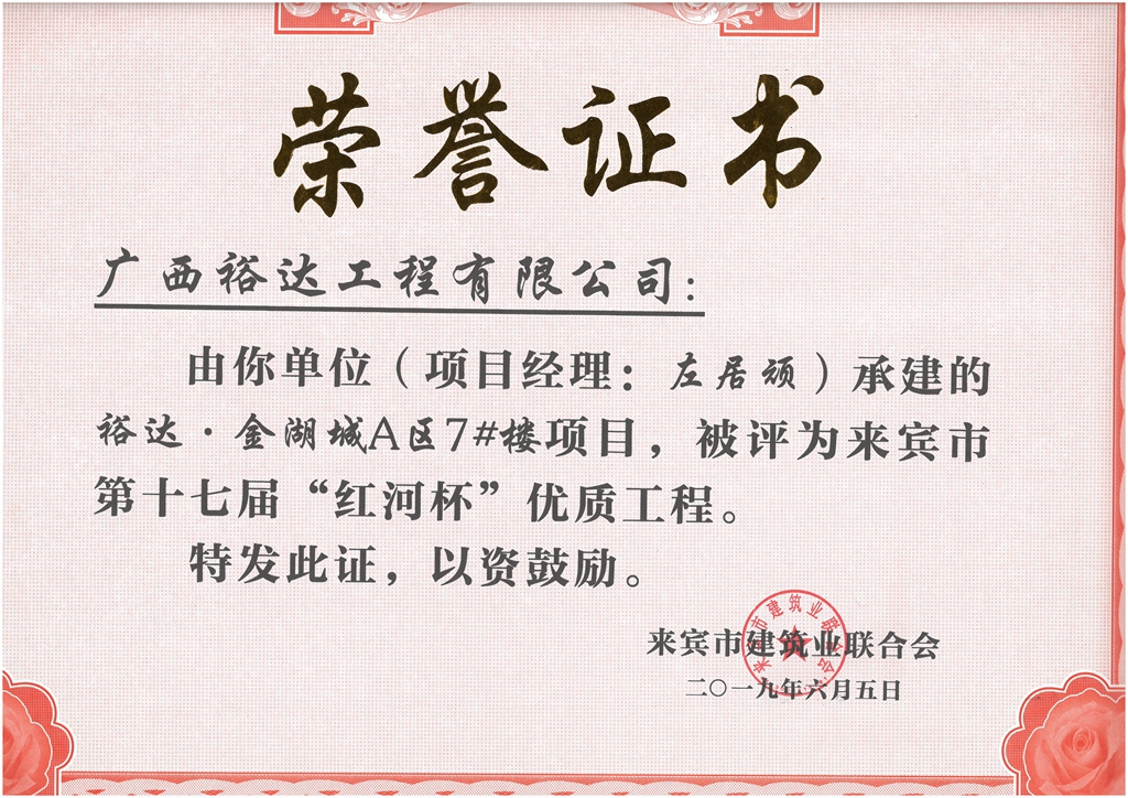 下一篇:裕達(dá)·金湖城A區(qū)1#樓項(xiàng)目評(píng)為來賓市第十七屆“紅河杯'優(yōu)質(zhì)工程(項(xiàng)目經(jīng)理:胡凌毅)